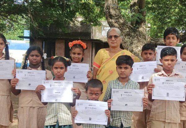 அதன்படி, கல்வித்துறை அதிகாரிகள் உத்தரவின்படி, புவனகிரி ஆலம்பாடி அரசுப் பள்ளி மாணவர்கள், பள்ளி மற்றும் வீடுகளில் மரக்கன்றுகள் நட்டு தினசரி தண்ணீர் ஊற்றி பாதுகாப்பதுடன், விதிமுறைகளை பின்பற்றி இணையத்தில் அதற்கான போட்டோக்களை பதிவிட்டனர். இதற்காக அரசின் சான்றிழை ஊக்கப் பரிசுடன் தலைமை ஆசிரியை லதா, மாணவர்களுக்கு வழங்கினார்.