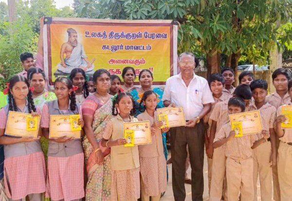 உலக திருக்குறள் பேரவை மாவட்ட தலைவர் பாஸ்கரன், போட்டியில் வெற்றி பெற்ற மாணவர்களுக்கு சான்றிதழ், திருக்குறள் புத்தகங்கள் வழங்கினார். நிகழ்ச்சியில், ஆசிரியர்கள் முருகவேல், ஜெயச்சந்திரன், எஸ்டர் விஜயகுமாரி, லேகா, காந்திமதி, சுமதி பங்கேற்றனர்.