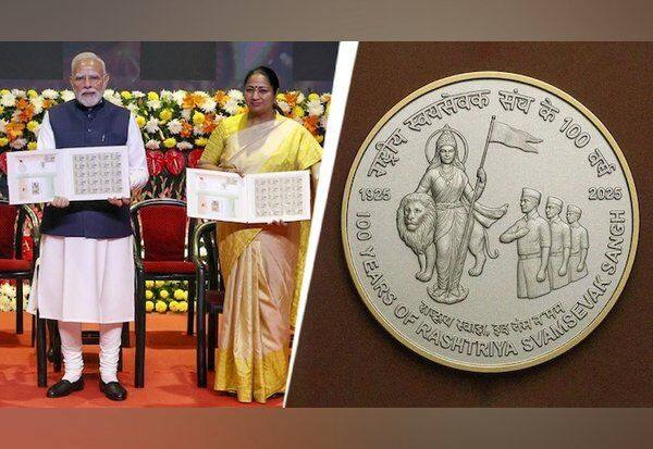 @block_B@ பாரத மாதாவுக்கு ரூ.100 நாணயம் ஆர்.எஸ்.எஸ்., நுாற்றாண்டு விழாவையொட்டி, சிறப்பு 100 ரூபாய் நாணயம் மற்றும் அஞ்சல் தலையை பிரதமர் மோடி வெளியிட்டார். அப்போது அவர் பேசியதாவது: சுதந்திர இந்தியா வரலாற்றில் முதல் முறையாக பாரத மாதா உருவம் பொறித்த நாணயம் வெளியிடப்பட்டுள்ளது. இது, மிகுந்த பெருமைக்குரிய விஷயம். இந்த நாணயத்தின் ஒரு பக்கத்தில், தேசிய சின்னம் பொறிக்கப்பட்டிருக்கிறது. மறு பக்கத்தில் சிம்ம வாகனத்தில் வரத முத்திரையுடன் பாரத மாதா அமர்ந்திருக்கும் உருவம் பொறிக்கப்பட்டுள்ளது. தேச பற்றுடன், ஸ்வயம் சேவகர்கள் அவரை வணங்குவது போன்ற உருவங்களும் இடம் பெற்றிருப்பது சிறப்பானது. இவ்வாறு அவர் பேசினார்.block_B