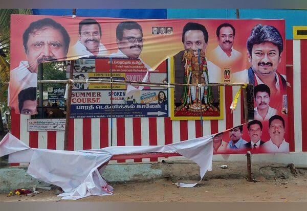 அதில், முதல்வர் ஸ்டாலின், அமைச்சர்கள் படங்களுடன் தங்க தமிழ்ச்செல்வனின் மகன் நிஷாந்த் படமும் இருந்தது. இந்த பேனர்களை, நேற்று முன் தினம் இரவு மர்ம நபர்கள் கிழித்து சேதப்படுத்தினர்.