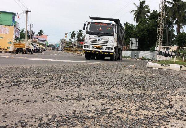 பெரும்பாலான லாரிகளில், அதிக அளவு பாரம் ஏற்றுவதோடு தார்ப்பாய் மூடாமல் செல்வதால், லாரிகளில் இருந்து ஜல்லிக்கற்கள் மற்றும் 'எம்.சாண்ட்' மணல் சாலையில் சிதறுகின்றன.