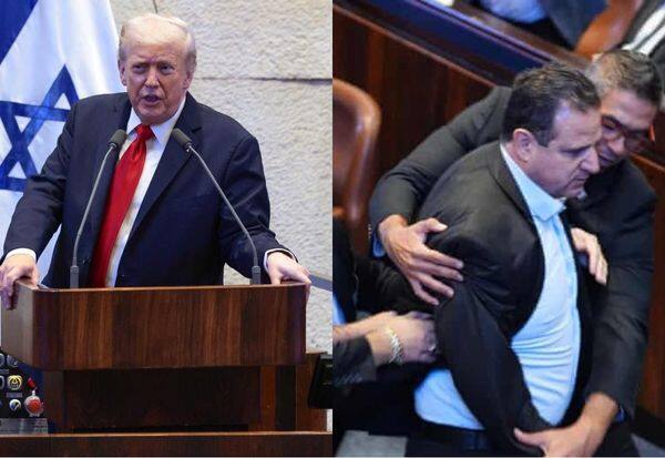 இஸ்ரேல் பார்லியில் டிரம்ப் பேசும்போது எம்.பி.,க்கள் இடையூறு!