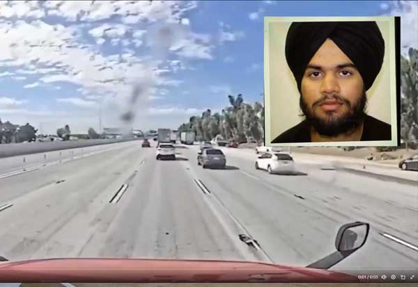 அமெரிக்காவின் தெற்கு கலிபோர்னியாவை சேர்ந்தவர் ஜஷான்பிரீத் சிங் 21, இவர், சான் பெர்னாடினோ கவுண்டி நெடுஞ்சாலையில் போக்குவரத்து நெரிசலின்போது, தனது லாரியை, கார் மீது மோதினார். இந்த விபத்தில் 3 பேர் கொல்லப்பட்டனர். இந்நிலையில் இவர் மீது விபத்து ஏற்படுத்தியதாகவும், சட்டவிரோதமாக குடியேறியவர் என்றும் குற்றச்சாட்டப்பட்டு கைது செய்யப்பட்டார்.