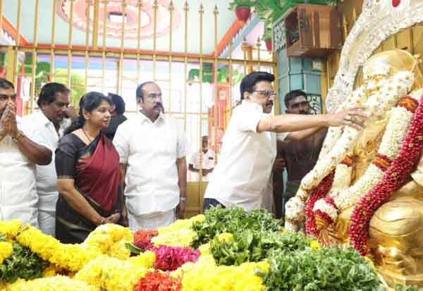 பசும்பொன் முத்துராமலிங்கத் தேவரின் 118வது ஜெயந்தி மற்றும் 63வது குருபூஜை விழா இன்று நடைபெறுகிறது. இதையொட்டி, மதுரை கோரிப்பாளையம் தேவர் சிலைக்கு முதல்வர் ஸ்டாலின் மாலை அணிவித்து மரியாதை செலுத்தினார். தொடர்ந்து, ராமநாதபுரம் மாவட்டம் பசும்பொன்னுக்கு சென்ற முதல்வர் ஸ்டாலின், முத்துராமலிங்க தேவர் சிலைக்கு மாலை அணிவித்து மரியாதை செலுத்தினார்.