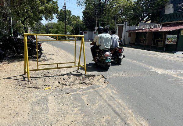 இங்கு ஆங்காங்கே ரோடு சேதமடைந்துள்ளது. ஸ்டேட் பேங்க் ஆப் இந்தியா அருகே ரோடு சேதம் அடைந்து மிகப்பெரிய பள்ளமாக மாறிவிட்டது. இதனை மறைப்பதற்காக தற்காலிகமாக பேரிகார்டு வைக்கப் பட்டுள்ளது.