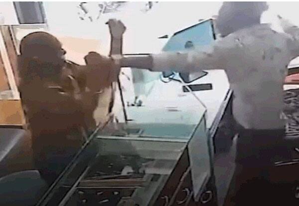 மிளகாய்பொடி தூவி நகைக்கடையில் கொள்ளை முயற்சி: பெண்ணை 20 விநாடிகளில் 17 முறை அறைந்த உரிமையாளர்