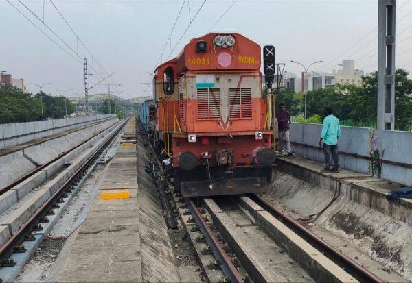வேளச்சேரி - பரங்கிமலை இடையே 'சரக்கு ரயில்' இயக்கி சோதனை 17 ஆண்டுகளாக நீடித்த பணி நிறைவு