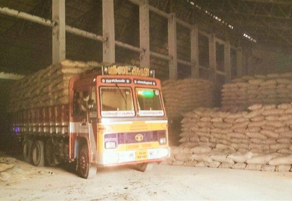 படாளம் சர்க்கரை ஆலை குடோனில் நெல் மூட்டைகள் அடுக்கி வைப்பு
