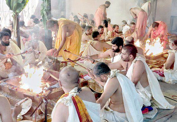 இந்த யாகத்தில் கர்நாடகாவின் பல பகுதிகளில் இருந்தும் வேத குருக்கள் வந்திருந்தனர். தினமும் பல்வேறு பூஜைகள், ஹோமங்கள் நடத்தப்பட்டன. நிறைவு நாளான கடந்த 9ம் தேதி, 10 யாக குண்டங்கள் அமைக்கப்பட்டன. 100க்கும் மேற்பட்ட வேத குருக்கள் அமர்ந்து, துர்க்கா சப்தசதி பாராயணத்துடன் சஹஸ்ர சண்டி ஹோமம் நடத்தினர்.