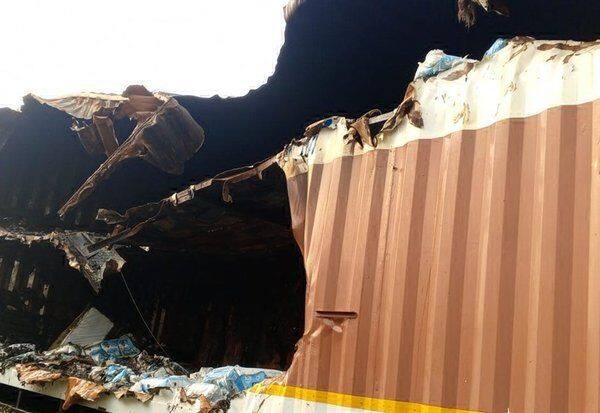 மின் வடத்தில் உரசிய லாரி ரூ.5 லட்சம் 'டயப்பர்' தீக்கிரை