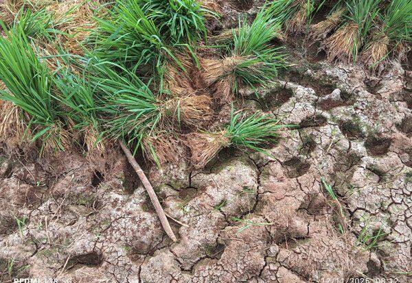 தண்ணீரின்றி நெல் வயலில் வெடிப்பு விவசாயிகள் கண்ணீர் வடிப்பு