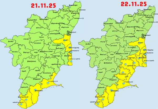 நவ., 21ல் 7 மாவட்டம், நவ.,22ல் 11 மாவட்டங்களுக்கு கனமழை எச்சரிக்கை