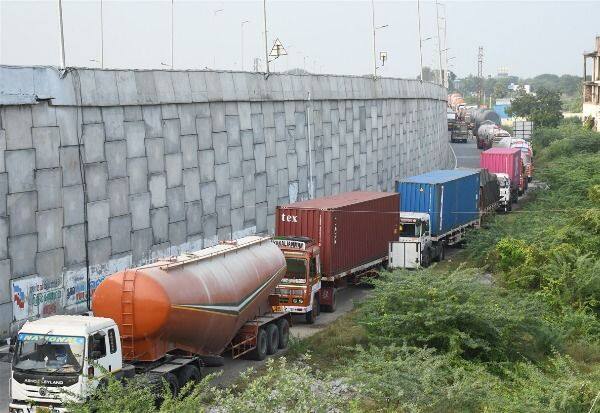 கன்டெய்னர் லாரிகள், டேங்கர் லாரிகள், நெல் அறுவடை இயந்திரங்களை ஏற்றிய லாரிகள், அதிக அச்சுகள் கொண்ட கனரக லாரிகள் போன்றவற்றை திருப்பி அனுப்பினர்.