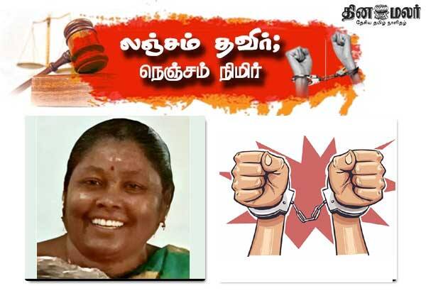 மறைந்திருந்த லஞ்ச ஒழிப்புத்துறை போலீசார், சந்திரலேகாவை கைது செய்து விசாரிக்கின்றனர்.