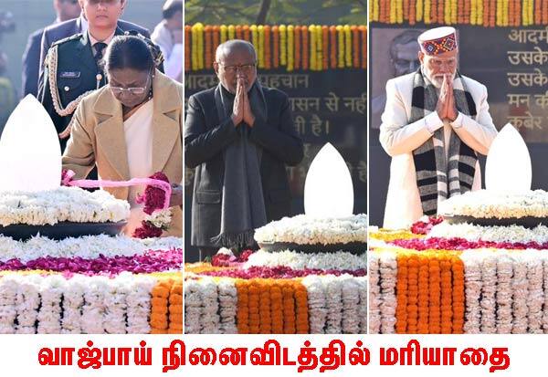 முன்னதாக, பிரதமர் மோடி சமூகவலைதளத்தில் வெளியிட்டுள்ள பதிவில் கூறியிருப்பதாவது: நாட்டு மக்களின் இதயங்களில் ஆழமாகப் பதிந்த முன்னாள் பிரதமர் வாஜ்பாய்க்கு பிறந்தநாள் வாழ்த்துக்கள். அவர் தனது முழு வாழ்க்கையையும் நல்லாட்சி மற்றும் தேசத்திற்காக அர்ப்பணித்தார்.