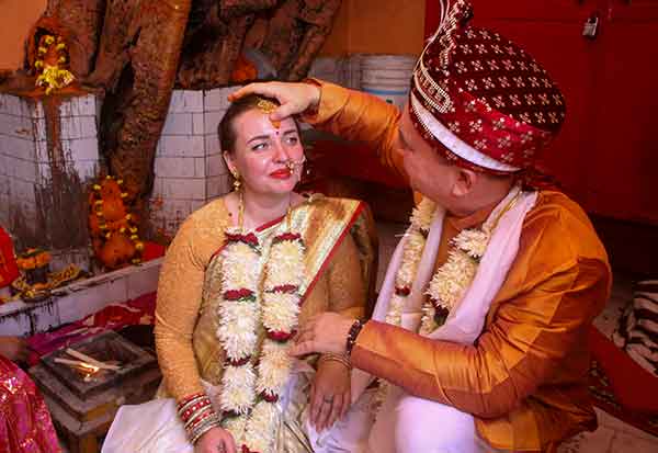 காசியில் திருமணம் முடித்த ரஷ்ய காதலர்கள்.