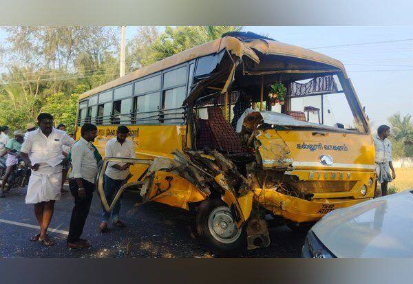 கல்லுாரி வேன்- - லாரி மோதல் மாணவி உட்பட 3 பேர் காயம்