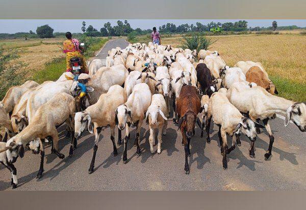 வயல்களில் ஆட்டு கிடைக்கு பயன்படும் செம்மறி ஆடுகள்