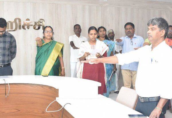 கல்லுாரி முதல்வர் தர்மராஜா, உறுதி மொழி வாசிக்க, அனைத்து துறை தலைவர்கள், பேராசிரியர்கள், மாணவ, மாணவிகள் உறுதிமொழி ஏற்றனர்.