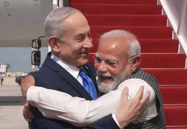 டெல் அவிவ் நகரத்தில் விமானத்தில் இருந்து உற்சாகமாக இறங்கிய பிரதமர் மோடியை, இஸ்ரேல் பிரதமர் நெதன்யாகு, தமது மனைவி சாரா உடன் நேரில் சென்று வரவேற்றார். பிரதமர் மோடிக்கு சிவப்பு கம்பள வரவேற்பு அளிக்கப்பட்டது.