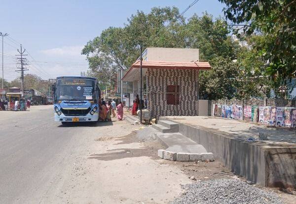இதன் எதிரே டிரான்ஸ்பார்மர் ரோட்டின் ஒரு பகுதியை அடைத்த நிலையில் இதற்கு எதிர்ப்பு தெரிவித்தும் பஸ் ஸ்டாப் பணிகள் முடிந்தது. தற்போது நெடுஞ்சாலைத் துறைக்கு சொந்தமான இது இதன் அருகிலேயே தொழிலாளர் நலத்துறை சார்பில் நல வாரிய கட்டுமானத்திற்கான புதிய பணி நடந்து வருகிறது.