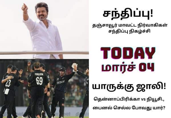 தஞ்சையில் விஜய் பொதுக்கூட்டம் முதல் உலக கோப்பை கிரிக்கெட் அரையிறுதி வரை; இன்றைய முக்கிய நிகழ்வுகள் (மார்ச் 04)!