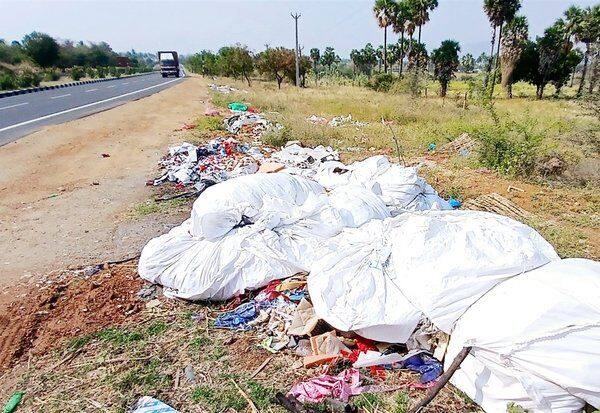 சமீபத்தில் கொட்டப்பட்டுள்ள பிளாஸ்டிக் கழிவுகளில் காலாவதியான மருத்துவப் பொருட்களும் ஆங்காங்கே சிதறிக்கிடக்கின்றன. நெடுஞ்சாலைத்துறை நிர்வாகம் இப்பகுதியில் சி.சி.டிவி., கேமரா பதிவுகள் கொண்டோ அல்லது எச்சரிக்கை பலகைகளை வைத்தோ கழிவுப்பொருட்கள் கொட்டுவதை தடுக்க வேண்டும் என்ற கோரிக்கை எழுந்துள்ளது.