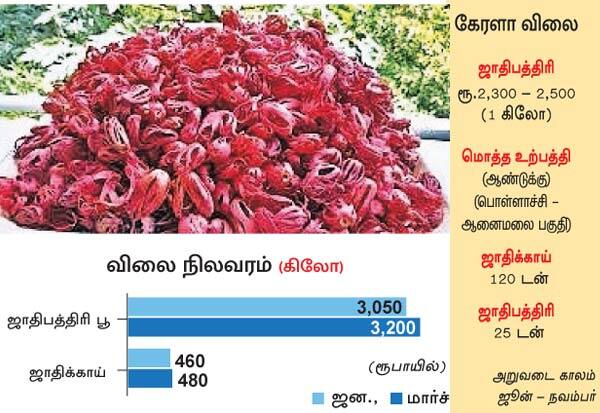 ஜாதிபத்திரி விலை கிடுகிடு கிலோவுக்கு 150 ரூபாய் உயர்வு பொள்ளாச்சியில் அதிகபட்ச விலை