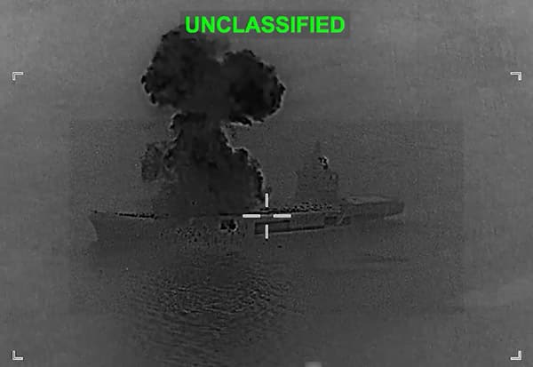 ஈரானின் டிரோன் தாங்கி கப்பல் மீது தாக்குதல்; வீடியோ வெளியிட்டது அமெரிக்கா