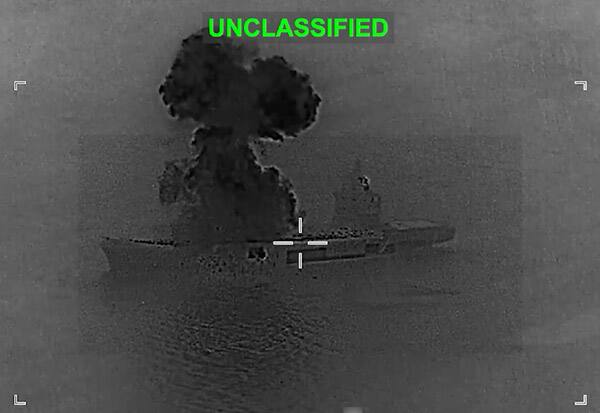 இந்த நிலையில், ஈரானின் டிரோன் தாங்கி கப்பல் மீது தாக்குதல் நடத்தியுள்ளதாக அமெரிக்கா தெரிவித்துள்ளது. இது தொடர்பான வீடியோவை எக்ஸ் தளத்தில் பகிர்ந்த அமெரிக்க சென்ட்ரல் கமென்ட், ஈரானின் கடற்படை மற்றும் ராணுவ உள்கட்டமைப்புகளை குறிவைத்து தாக்குவது தொடரும் என்று தெரிவித்துள்ளது.