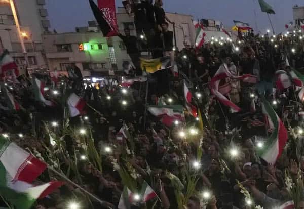 ஈரானுக்கு எதிரான தாக்குதல்களை நிறுத்துங்கள்; லண்டனில் அமெரிக்க தூதரகம் நோக்கி 5000 பேர் பேரணி