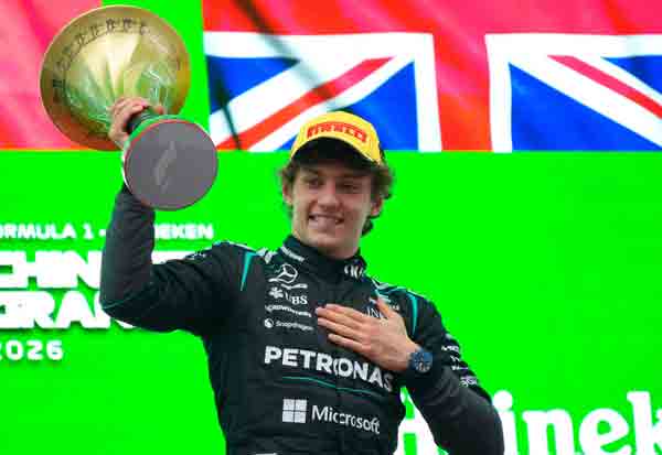 ஷாங்காய்: சீனாவின் ஷாங்காய் நகரில், நடப்பு ஆண்டின் 'கிராண்ட் பிரிக்ஸ் பார்முலா-1' கார்பந்தயத்தின் 2வது சுற்று நடந்தது. பந்தய துாரத்தை ஒரு மணி நேரம், 33 நிமிடம், 15.607 வினாடியில் கடந்த 'மெர்சிடஸ்' அணியின் இத்தாலி வீரர் கிமி ஆன்டோனெல்லி சாம்பியன் பட்டத்தை கைப்பற்றினார். அடுத்த இரு இடங்களை 'மெர்சிடஸ்' அணியின் ஜார்ஜ் ரசல் (பிரிட்டன்), 'பெராரி' அணியின் லீவிஸ் ஹாமில்டன் (பிரிட்டன்) தட்டிச் சென்றனர்.